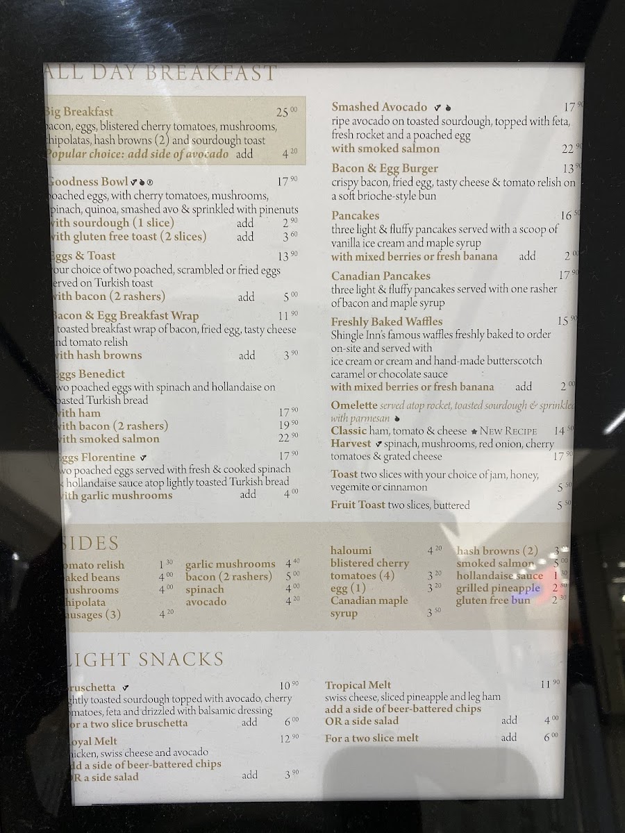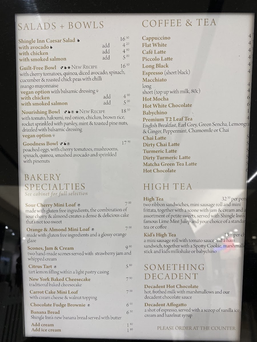 And what's a café without comforting beverages? Savor classic favorites like the Iced Chocolate and Iced Coffee, or try one of their famous thickshakes for a sweeter treat. Shingle Inn The Pines is not just a café; it's a local to savor moments.
